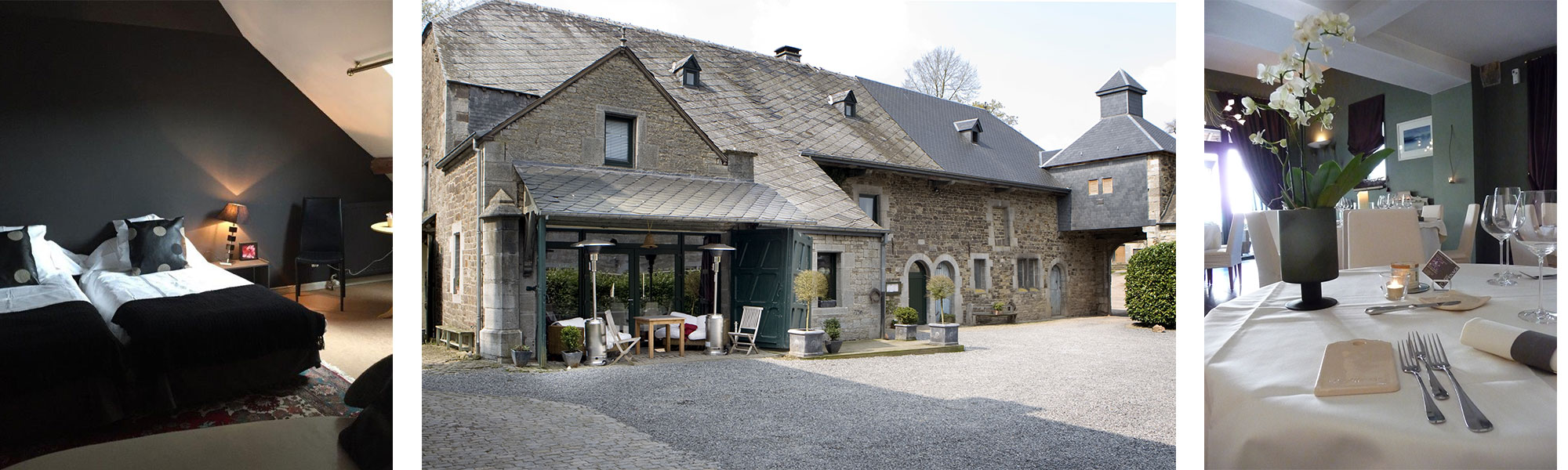 Deze ruime annexe van het kasteel van Blier werd gerestaureerd en ingericht met respect voor de authentieke plek, hetgeen ontegensprekelijk bijdraagt tot haar charme. In het restaurant met zijn blauwstenen vloer , met vele kunstwerken, brengen wij een aangename sfeer bij het haardvuur. Een plek om te ontdekken voor een aangenaam verblijf. Philppe Vanderlinden bewerkt geraffineerd nobele produkten op zijn eigentijdse wijze.